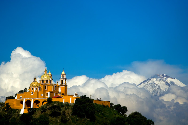 Bonito de mais para ser verdade: vista de Cholula (Puebla, México) para o Vulcão Popocatepetl
