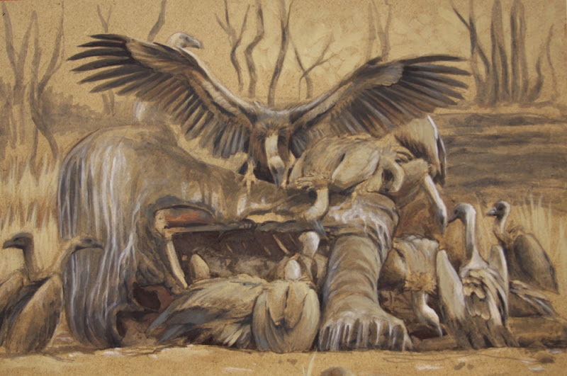 Os abutres têm um longo pescoço desprovido de plumagem para poderem debicar mais profundamente as carcassas de animais corpulentos.